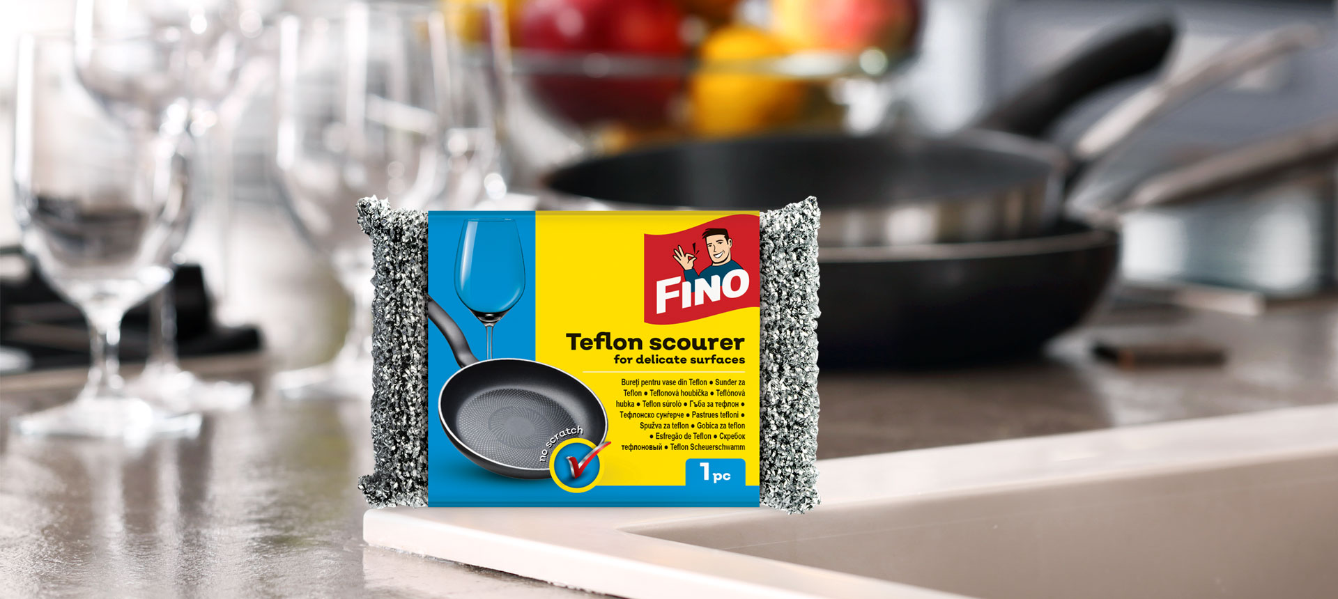 Hubka Fino na teflónový riad je ideálna pre bežné umývanie všetkého nepriľnavého riadu (hrnce, panvice). Vďaka svojmu inovatívnemu zloženiu dokonale čistí citlivé povrchy bez toho, aby ich poškriabala. Môžete ju používať aj na chúlostivý krištáľový povrch. Ľahko sa čistí a udržuje, nezostávajú v nej zvyšky jedla a nečistoty.