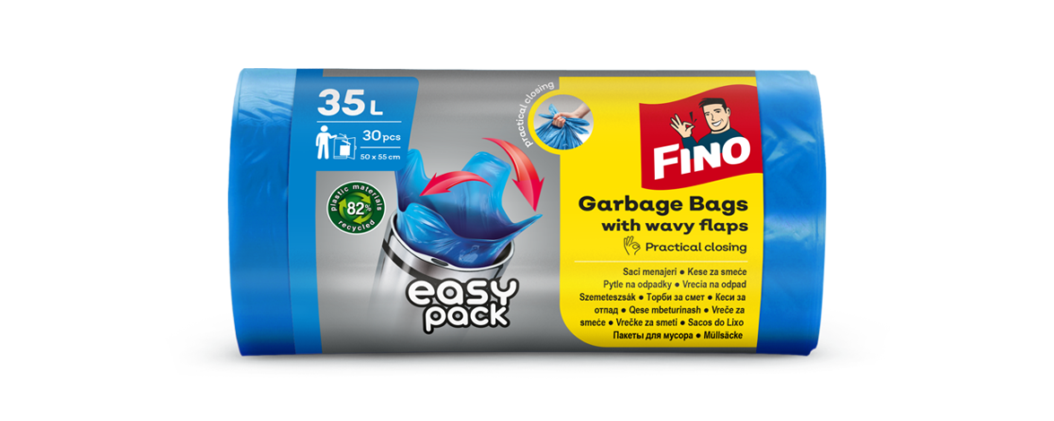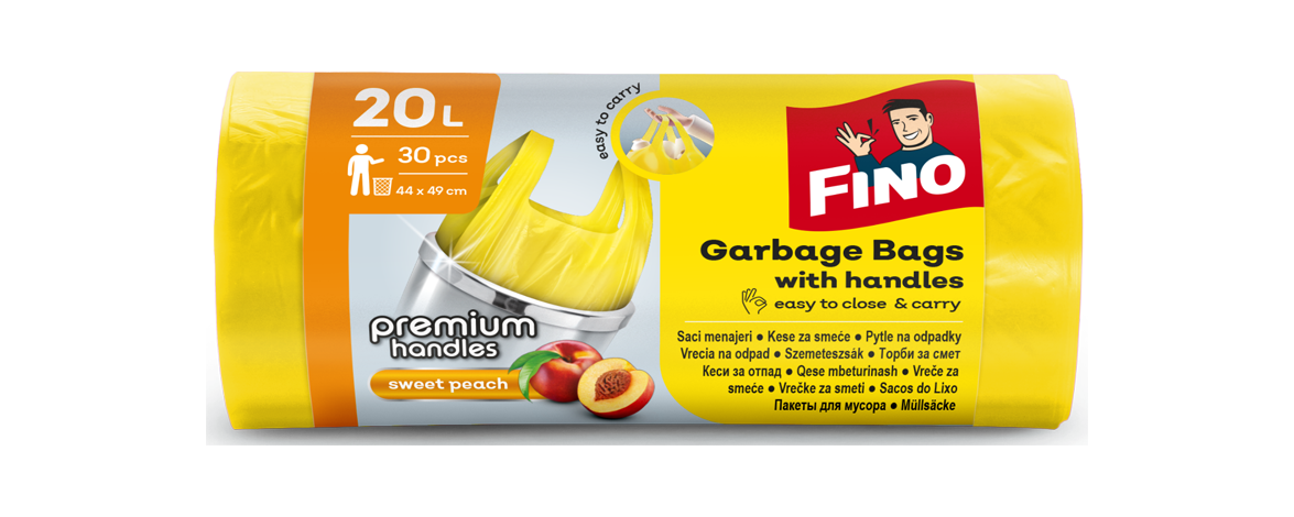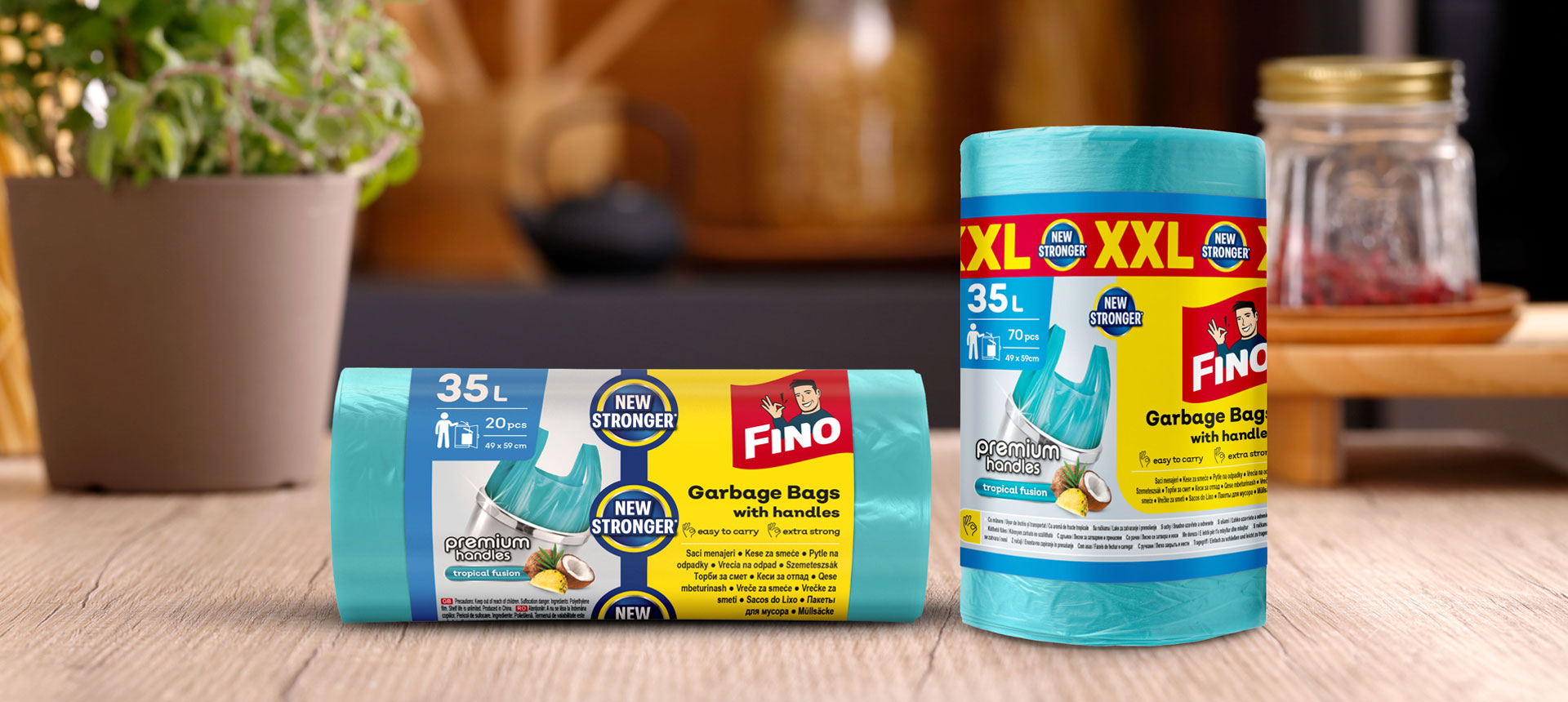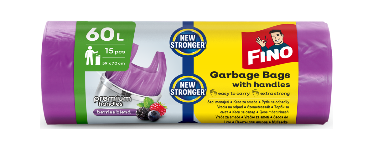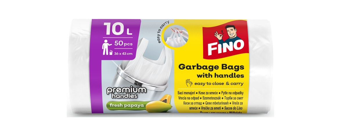 Odpadkové vrecká FINO PREMIUM HANDLES s praktickými ušami sú ideálnou voľbou na pohodlné a jednoduché prenášanie. Vďaka hviezdicovému zvaru na dne sú mimoriadne pevné. V žiarivej tyrkysovej farbe s vôňou kokosu.