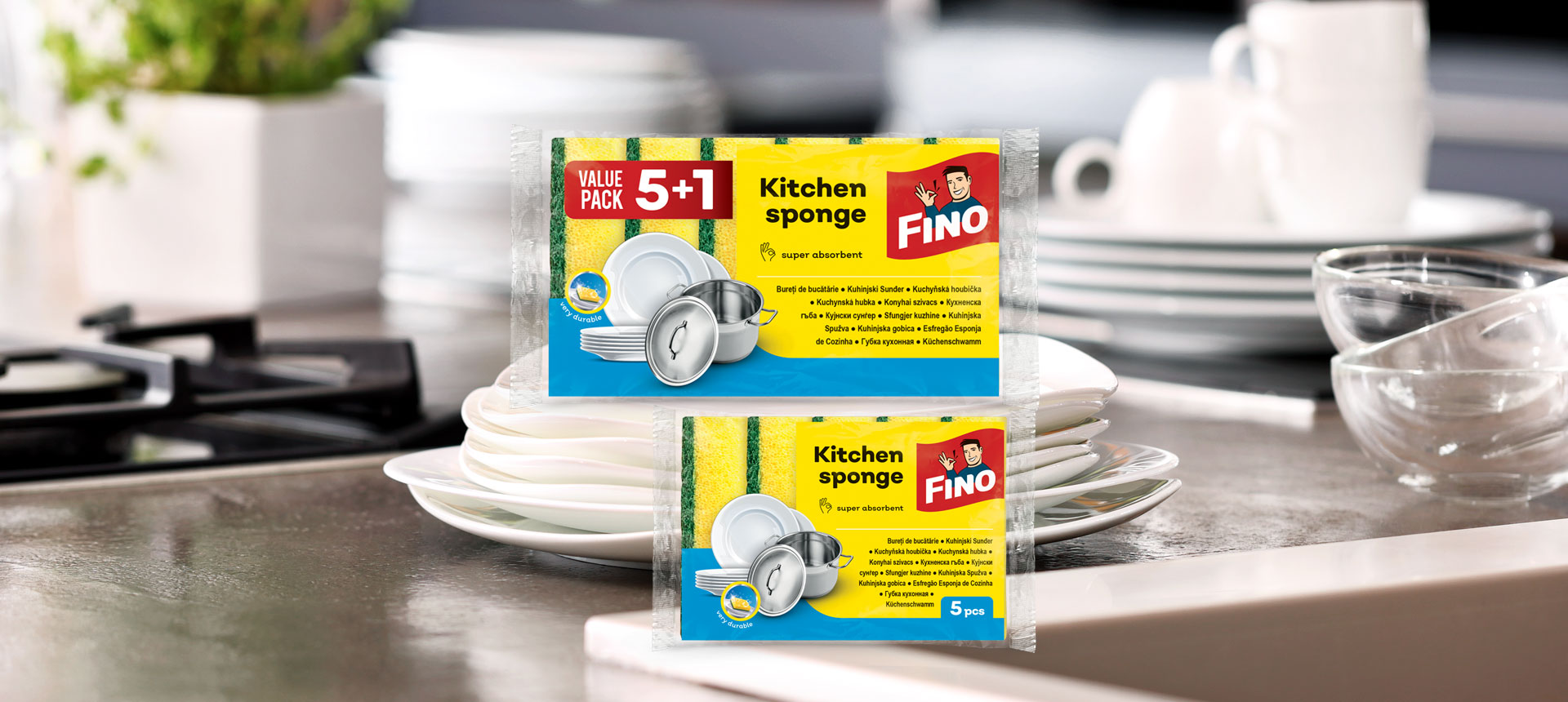 Fino kuhinjski sunđer je idealan za svakodnevno pranje svog posuđa (tanjira, čaša, šerpi) na lak i efikasan način. Može vam pomoći čak i sa najtvrdokornijim mrljama kao što su masnoća i fleke.